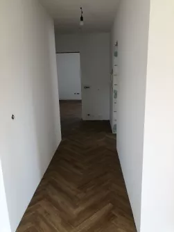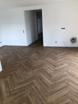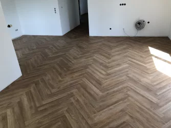 Nach der Spachtelung erfolgte die Verlegung vom Vinylboden in Fischgräten Optik